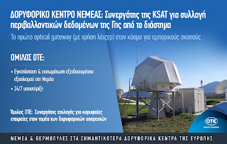 To Κέντρο Δορυφορικών Επικοινωνιών του Ομίλου ΟΤΕ στη Νεμέα επέλεξε η Kongsberg Satellite Services (KSAT), κορυφαίος πάροχος δορυφορικών υπηρεσιών και γεωσκόπησης, ώστε να εγκαταστήσει την πρώτη στο είδος της υποδομή με κεραία που συλλέγει δεδομένα από δορυφόρους (Optical Gateway) μέσω οπτικού σήματος (λέιζερ), για εμπορικούς σκοπούς. Μέσα από αυτή την state-of-the-art υποδομή, η KSAT θα διαθέτει δεδομένα και φωτογραφίες της γης σε οργανισμούς παγκόσμιου βεληνεκούς που ασχολούνται με τη διαχείριση και παρακολούθηση περιβαλλοντικών δεδομένων.